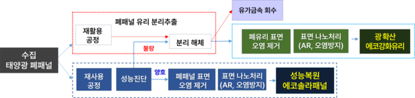 태양광 폐패널 재활용 처리 및 성능복원 재사용 공정 설명표 /자료제공=에이치5(주)